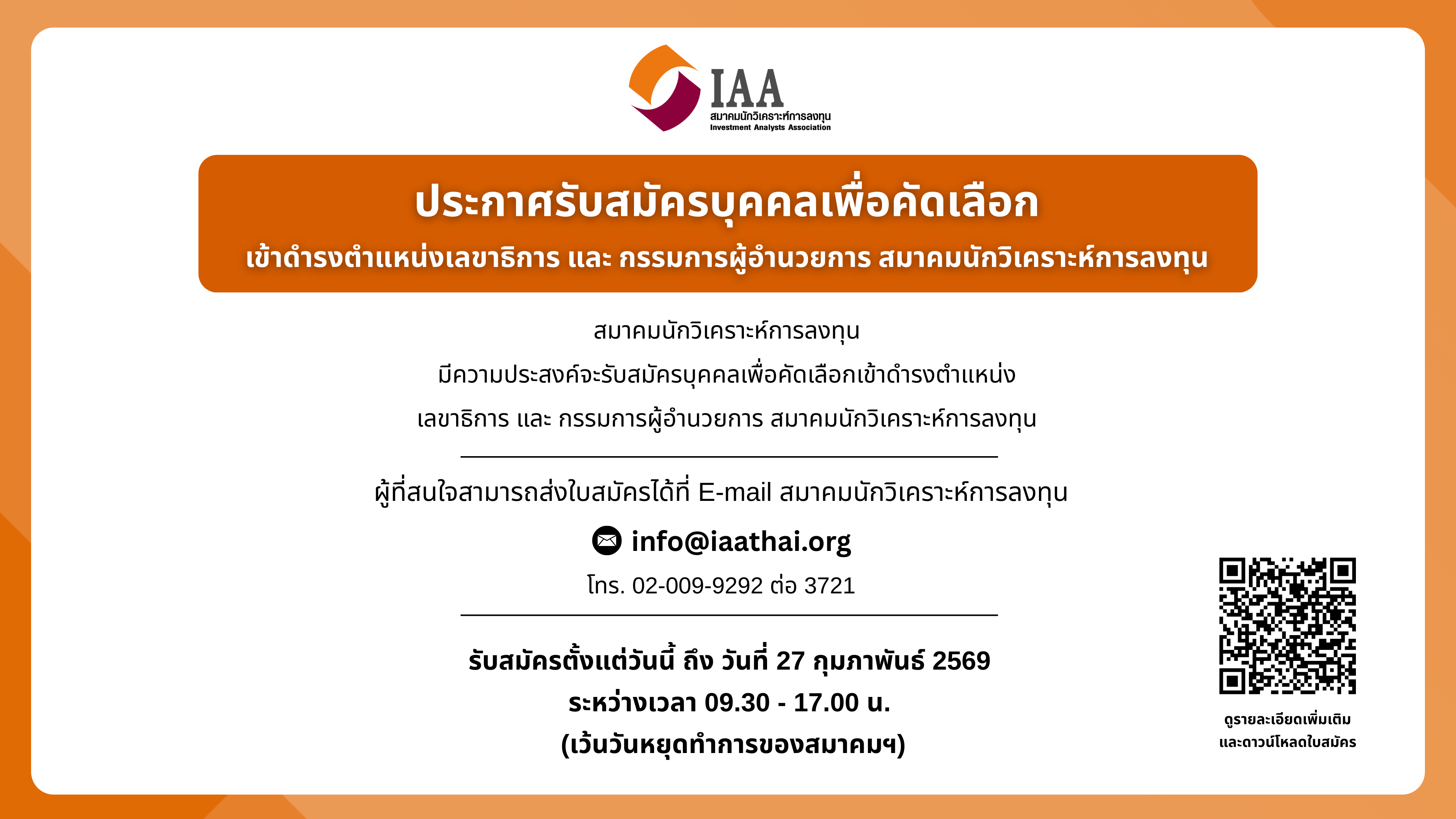 ประกาศรับสมัครบุคคลเพื่อคัดเลือกเข้าดำรงตำแหน่ง เลขาธิการ และ กรรมการผู้อำนวยการ สมาคมนักวิเคราะห์การลงทุน