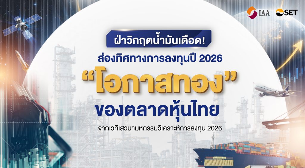 💡งานสัมมนามหกรรมวิเคราะห์การลงทุน ปี 2026 หัวข้อ “เมื่อน้ำมันวิกฤตทิศทางการลงทุนจะเป็นอย่างไร?” โดย ผู้ที่ได้รับรางวัล IAA BEST ANALYST AWARDS